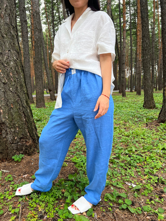 P A N T S 100% washed linen | blue