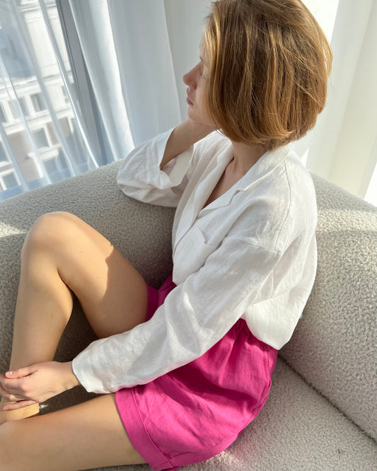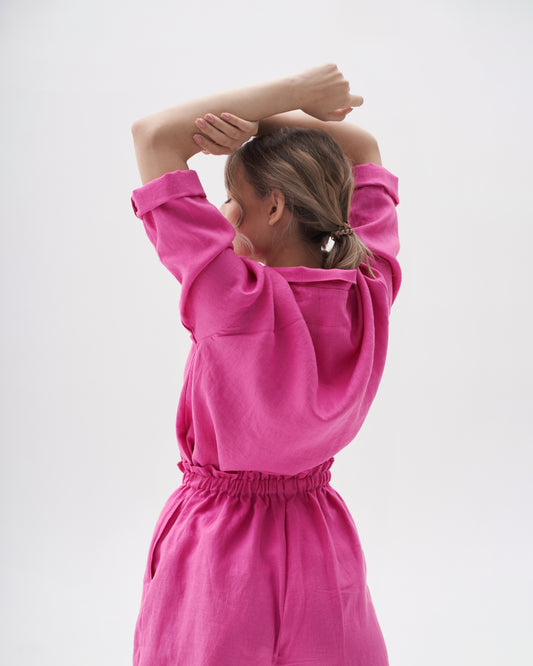 S H I R T 100% washed linen | long sleeve | pink