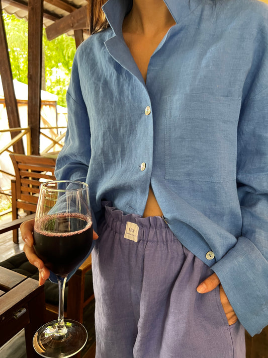 S H I R T 100% washed linen | long sleeve | blue